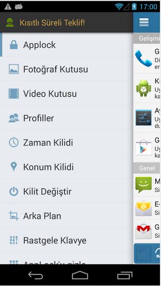 AppLock programı sayesinde galerideki bulunan bilgilerinizi şifreleyebilir ve başkalarının görmesini engelleyebilirsiniz.AppLock programı sadece galeri değil MS , Rehber, Gmail , Facebook vb bölümlerinizide şifreleyebilirsiniz.Programın iki farklı versiyonu bulunmkatadır.Ücretli ve ücretsiz olarak kullanıma açıktır.